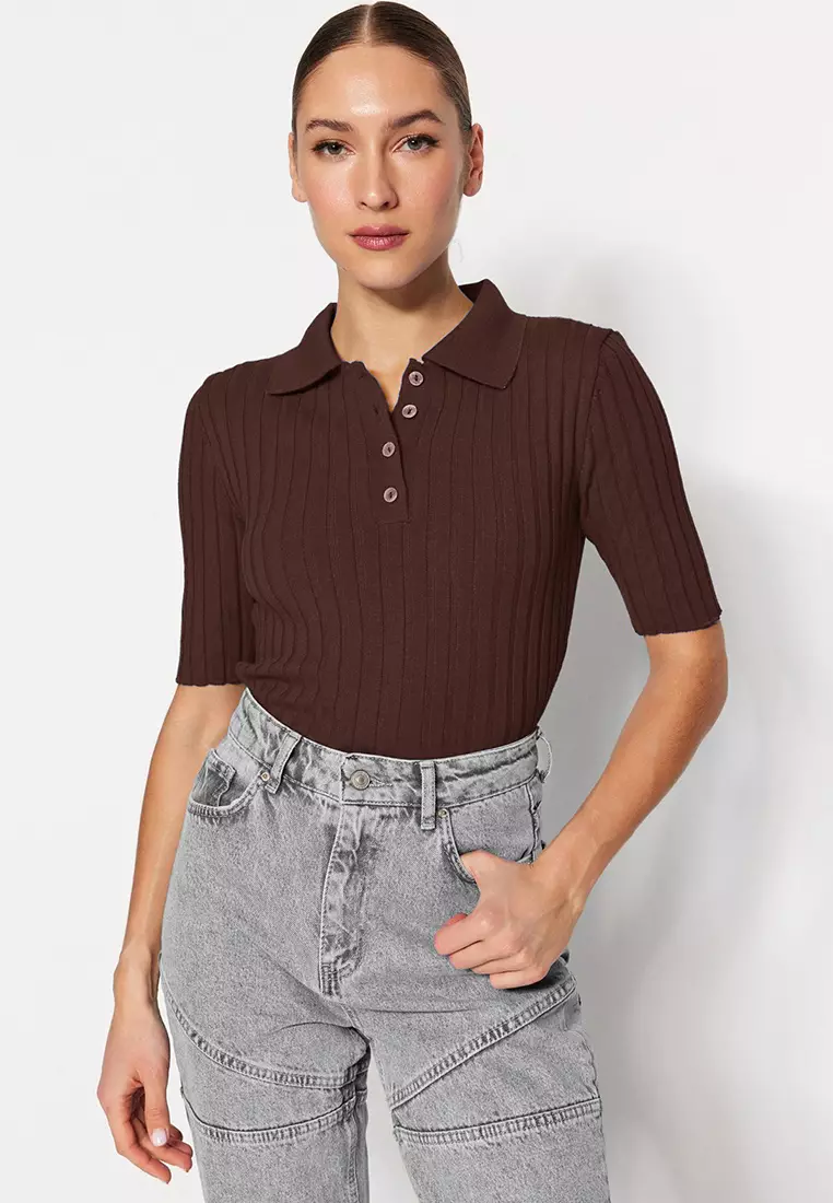 TrendyolBrown Basic Polo Neck T-Shirt Look Knitted Thin Blouse TWOSS20BZ01121319.00953.00