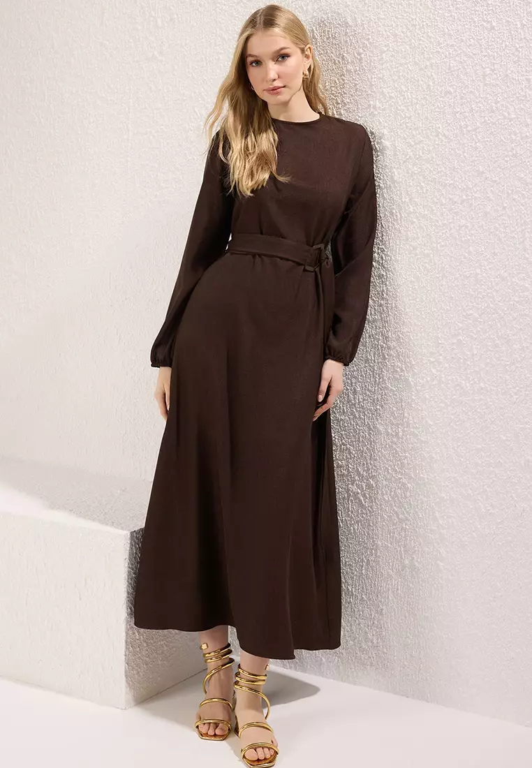 TrendyolBrown Belted Woven Dress Tctss25Eb000962489.001794.00