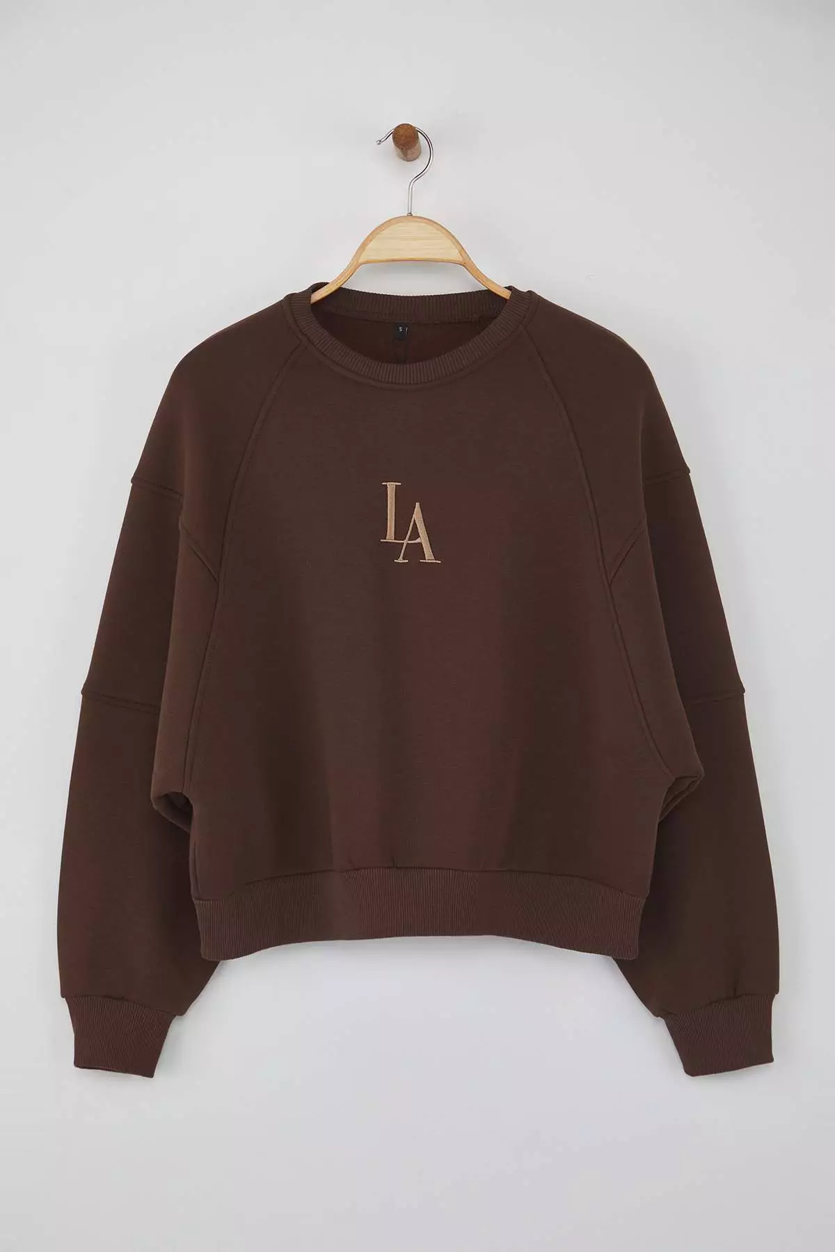 TrendyolBrown Crew Neck Regular Fit Embroidered Thick Polar Fleece Knitted Sweatshirt Twoaw24Sw001991399.00968.00