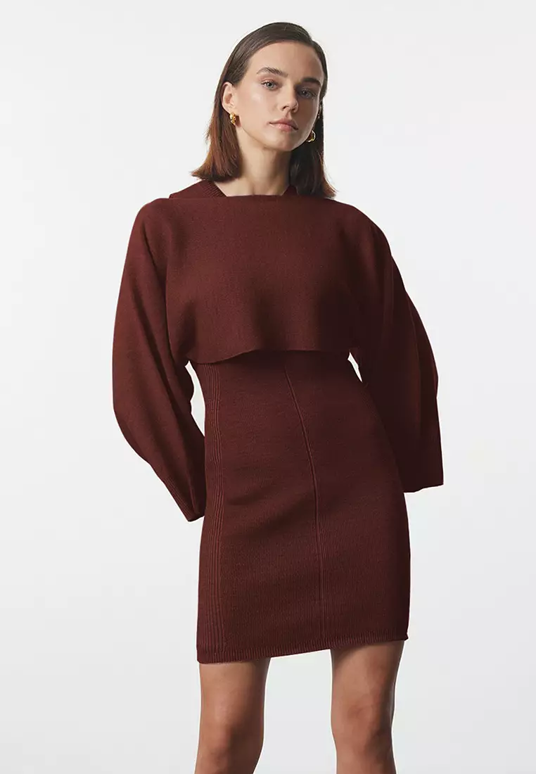 Brown Mini Knitwear Bolero-Dress Suit Twoaw25El00056