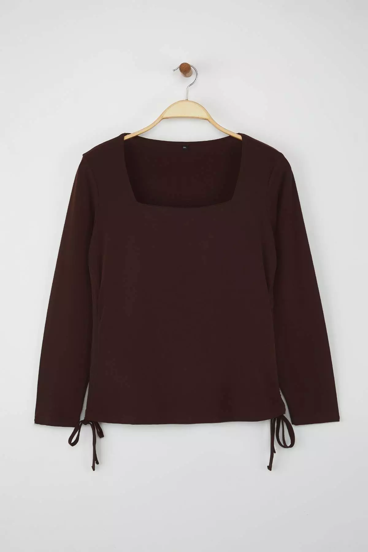 TrendyolBrown Square Neck Side Gathered Knitted Plus Size Blouse1399.00922.00