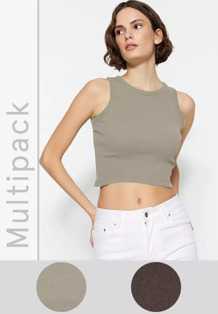 TrendyolBrown-Stone 2-Pack Crop Halter Neck Ribbed Flexible Knitted Undershirt1129.00983.00