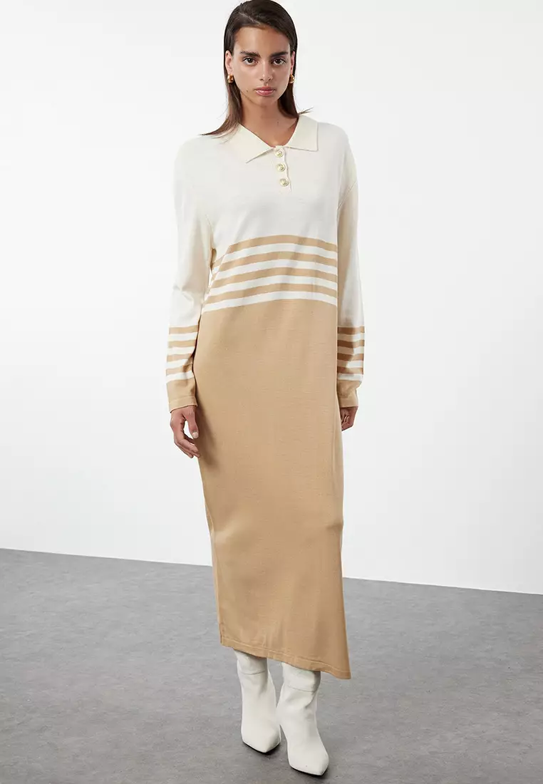 TrendyolBrown Stone Buttoned Color Block Knit Dress Tctaw25Eb000022279.001580.90