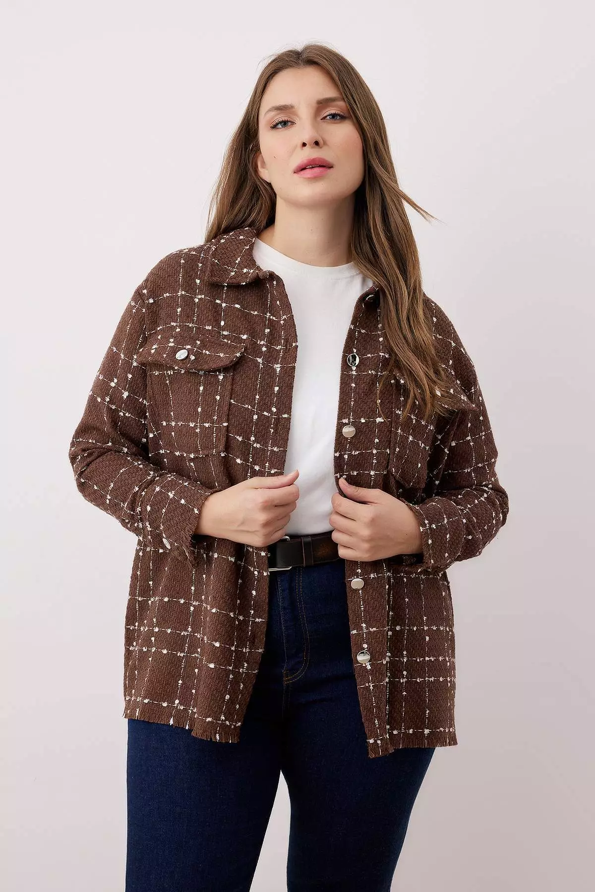 TrendyolBrown Tweed Long Sleeve Winter Woven Plus Size Shirt/Jacket2799.00