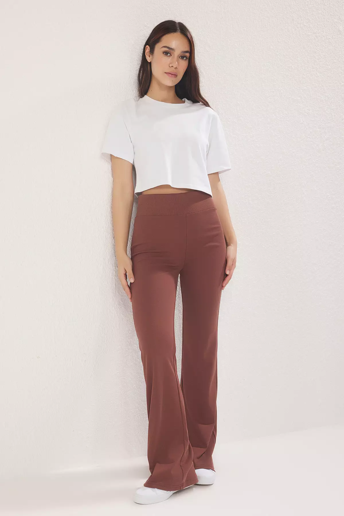 TrendyolBrown Wide Leg/Spanish Leg High Waist Interlock Stretchy Knitted Trousers TWOAW25PL000061919.001291.90