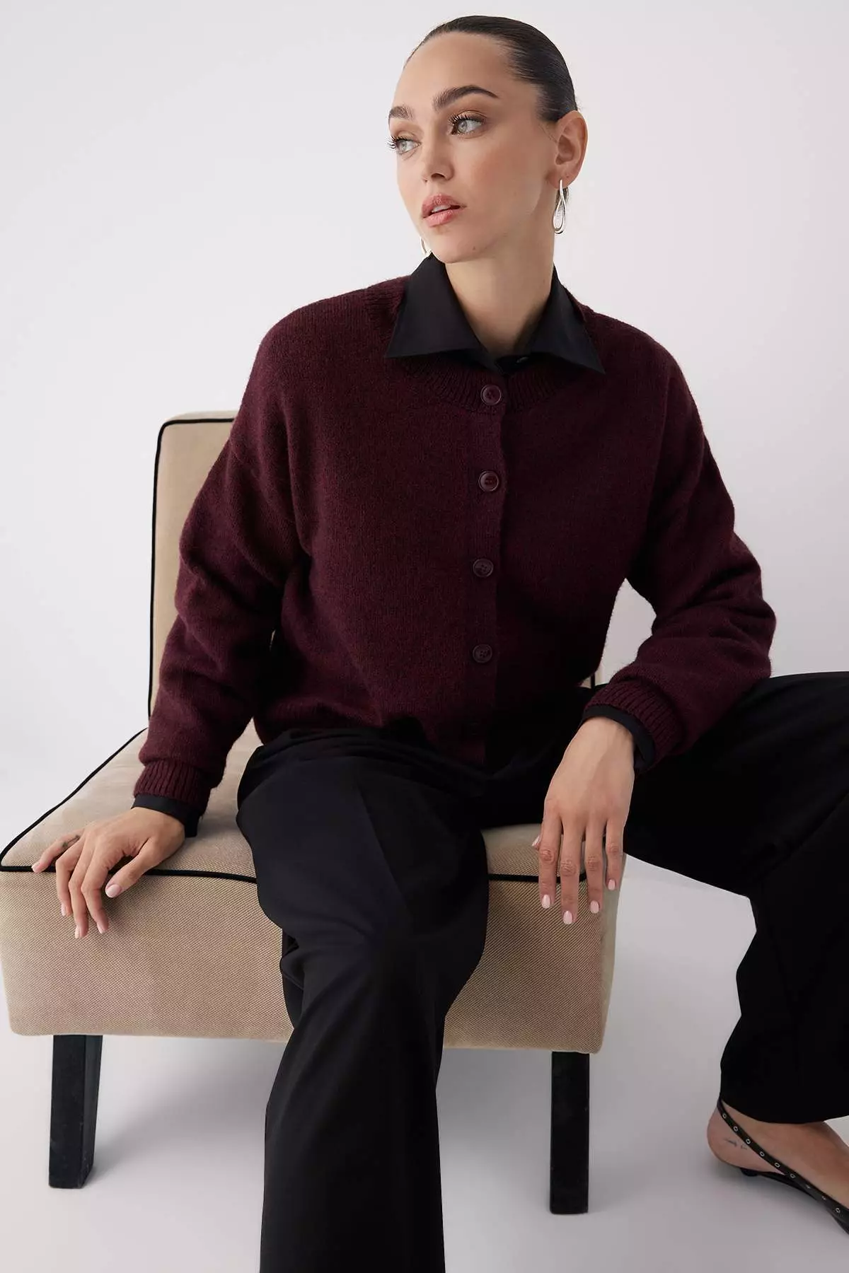 TrendyolBurgundy Alpaca Wool Blended Wide Fit Knitwear Cardigan3149.002407.00