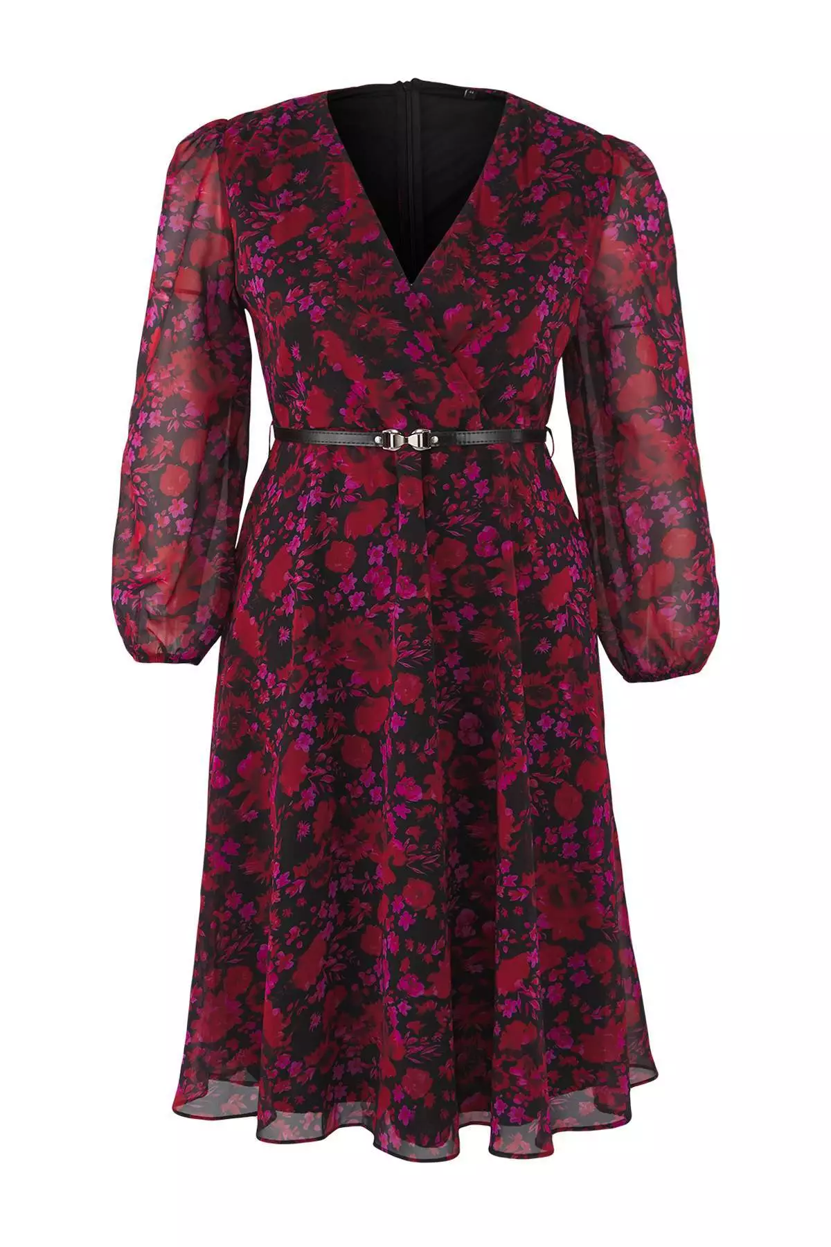 TrendyolBurgundy Floral Belted A-Line Midi Double-Breasted Patterned Chiffon Woven Dress3149.001644.00