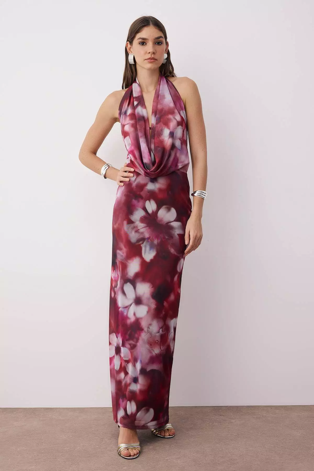 TrendyolBurgundy-Multi-Floral Patterned Knitted Tulle Long Evening Dress Graduation Dress Tprss24Ae002612799.002411.00