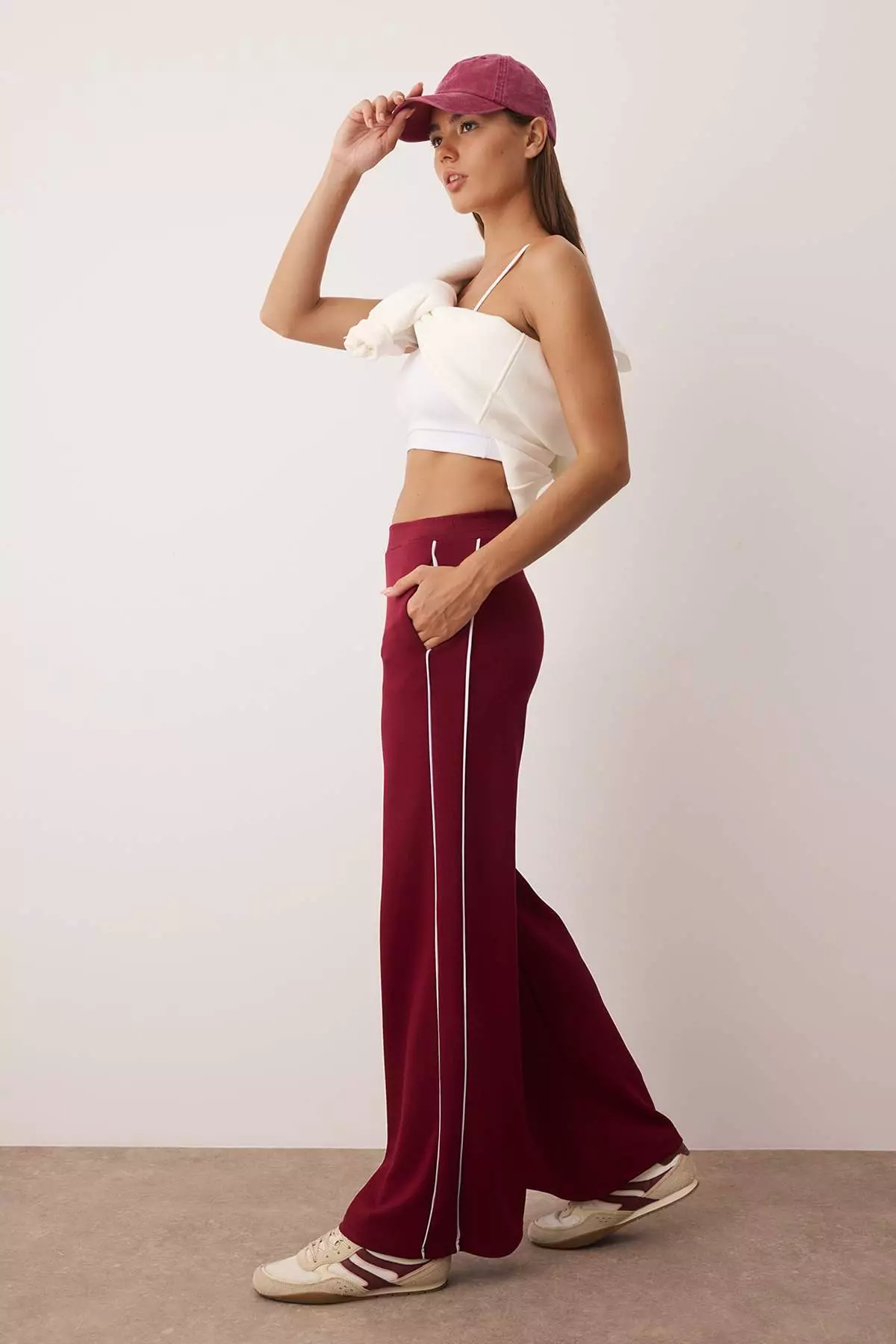 TrendyolBurgundy Piping Wide Leg/Wide Leg Knitted Sports Sweatpants Thmaw26Ea000011549.001406.94