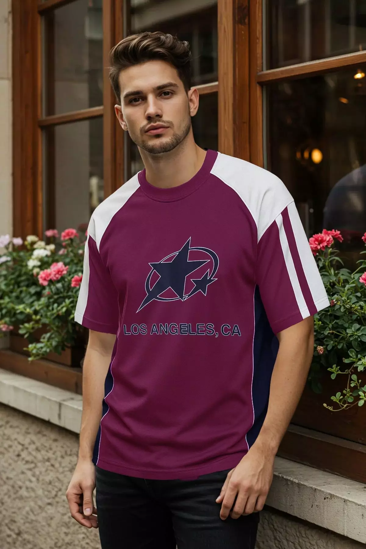 TrendyolClaret Red College Oversize/Wide Cut 100% Cotton Color Block T-Shirt Tmnss25Ts000951329.001094.00