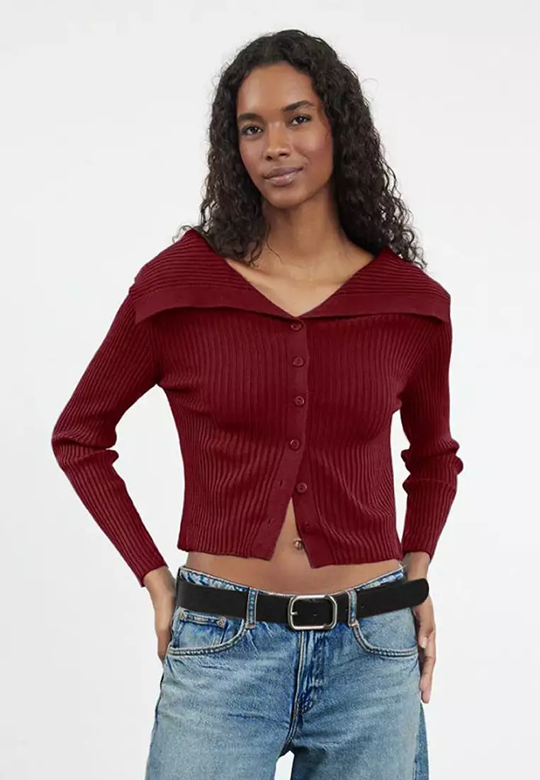 Claret Red Turn-down Collar Knitwear Cardigan TWOAW24HI00284