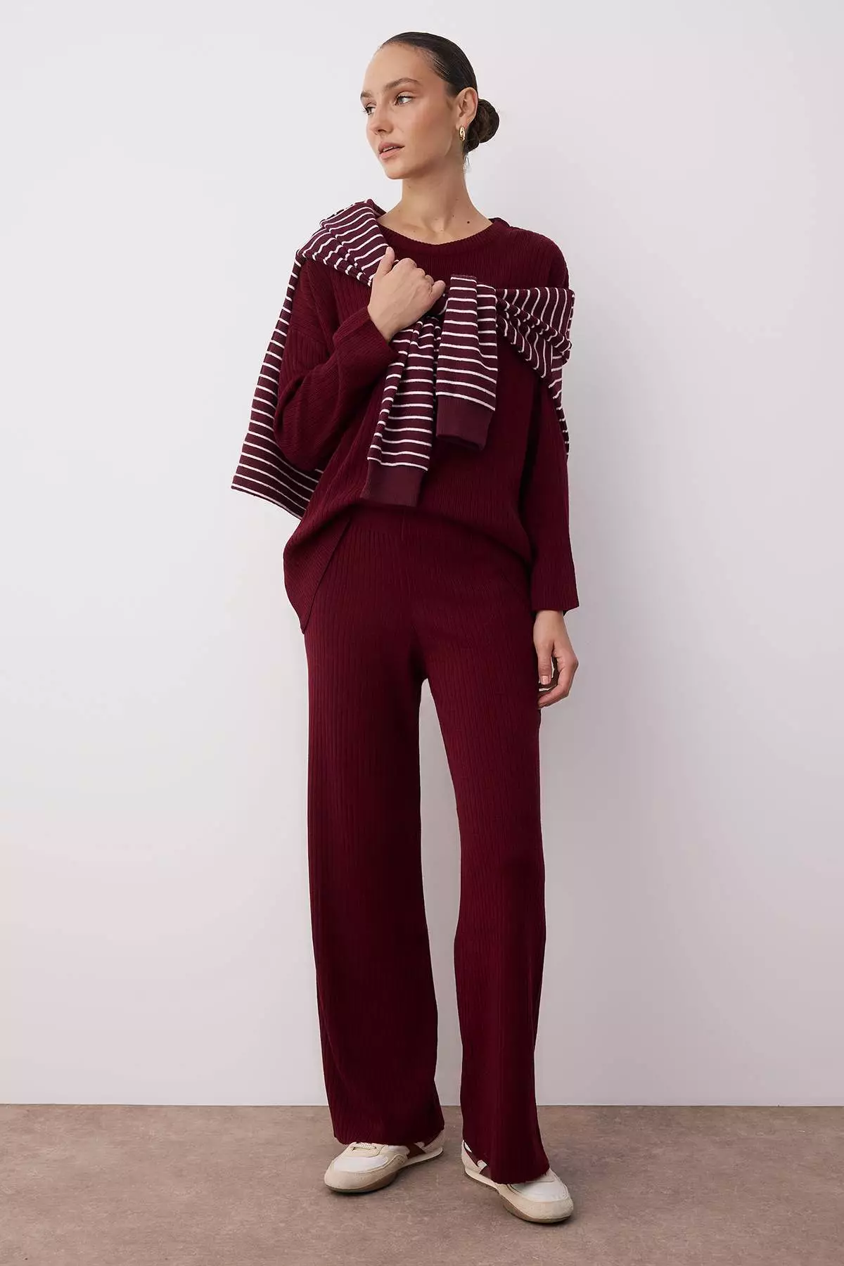 TrendyolClaret Red Wide Pattern Basic Ribbed Knitwear Top-Bottom Set Twoss20Au00842679.002391.00
