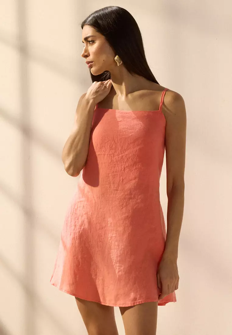Coral Mini Weaving 100% Linen Beach Dress TBESS25EL00103