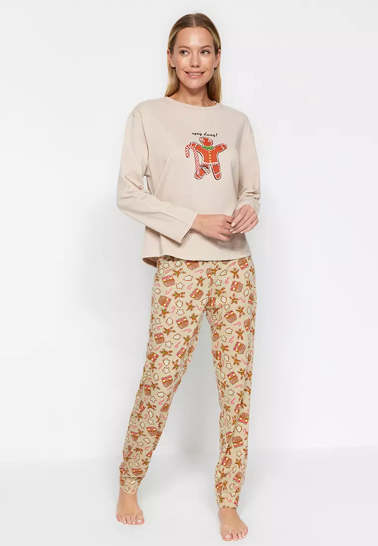 Cream 100% Cotton Christmas Themed Knitted Pajama Set THMAW24PT00061