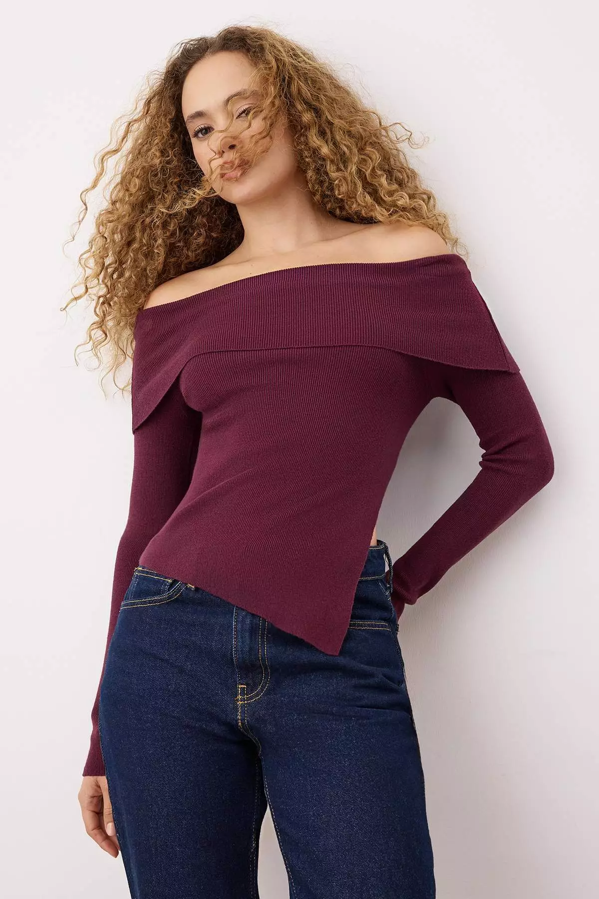 Damson Premium Yarn/Special Yarn Carmen Collar Knitwear Sweater