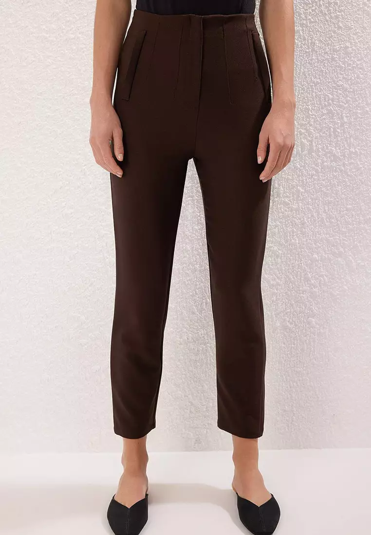 TrendyolDark Brown Cigarette Cut Darted High Waist Ankle Length Woven Fabric Trousers TWOSS20PL05152299.001360.90