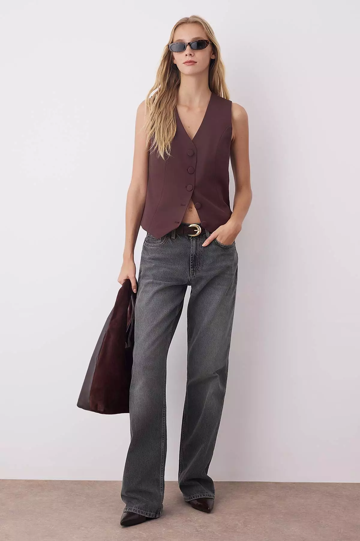 TrendyolDark Brown Fitted Buttoned Crop Woven Vest Twoss21Ye00092799.001605.00