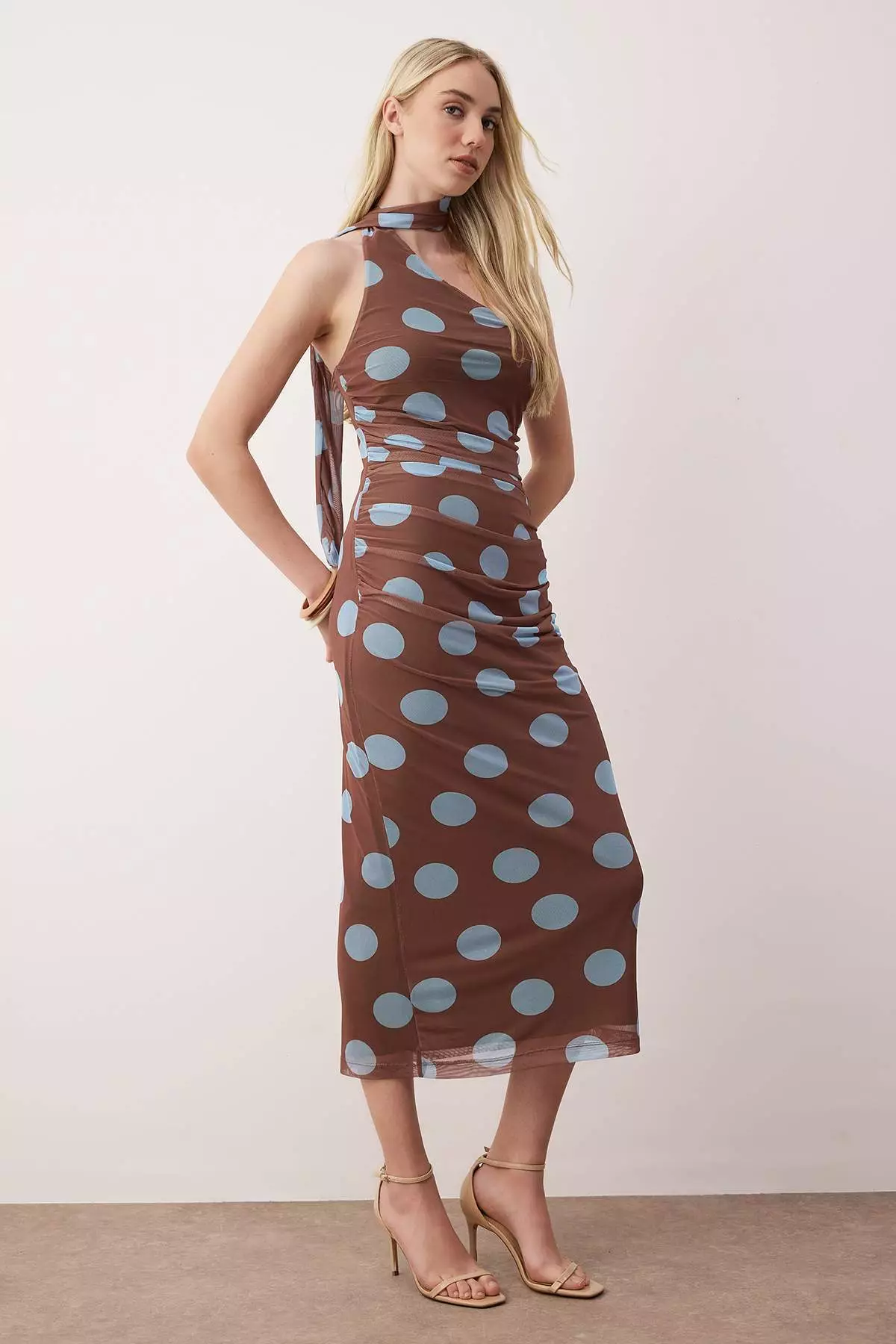 TrendyolDark Brown With Blue Polka Dots And Tie-Down Detailed Midi Knit Dress2299.001335.00