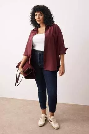 TrendyolDark Burgundy Boyfriend Large Size Woven Shirt Tbbss22Go03231629.001462.00