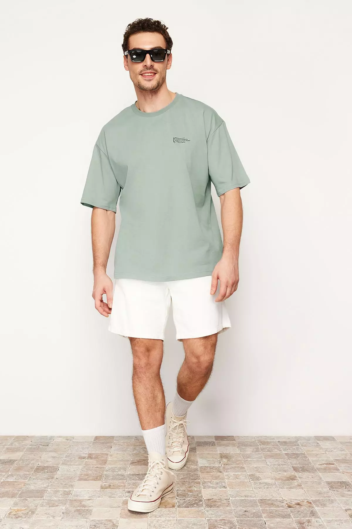 TrendyolDark Mint Oversize 100% Cotton Crew Neck Minimal Text Printed Tok Fabric T-Shirt Tmnss23Ts000841199.00908.00