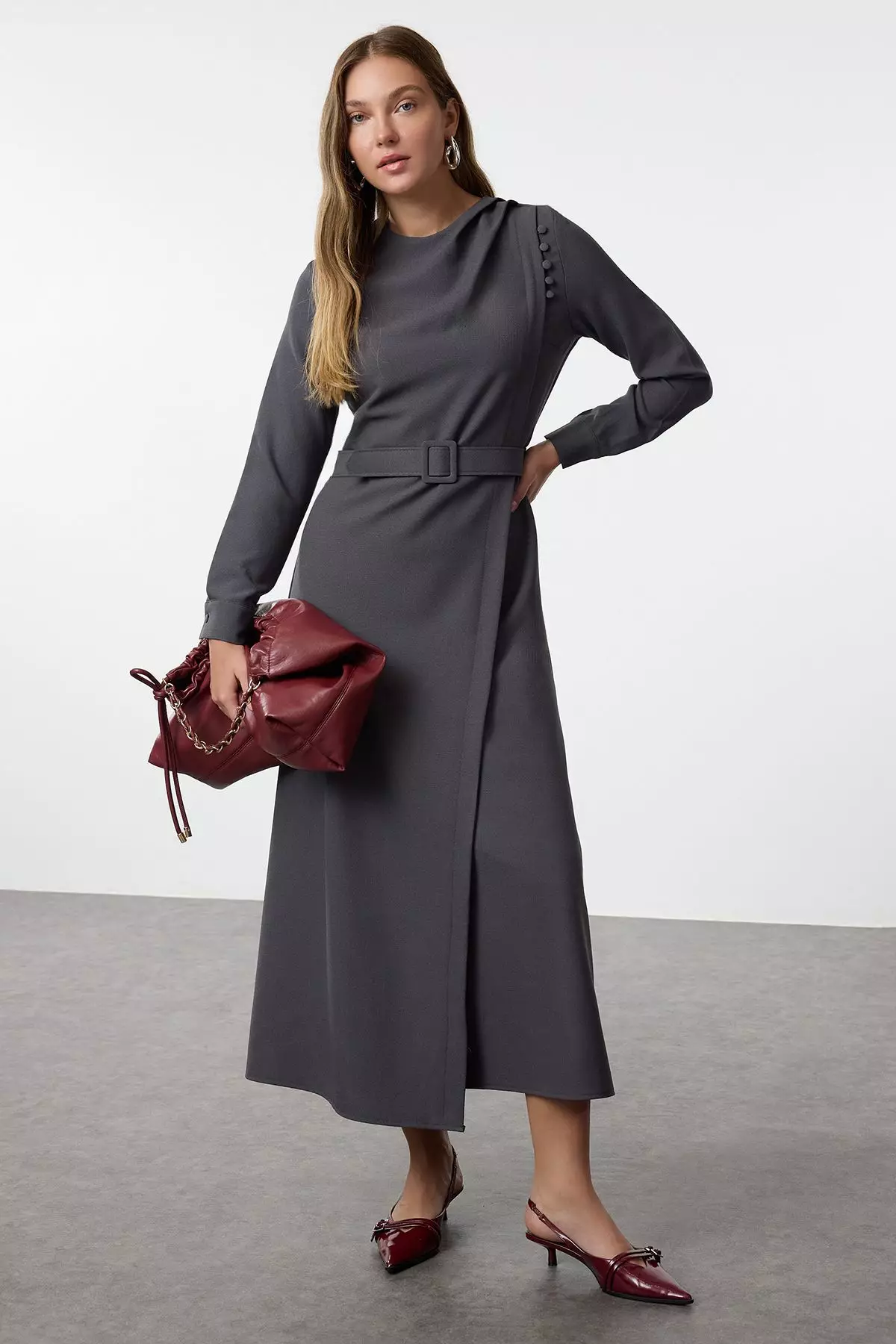 Double Breasted Draped Crepe Dress