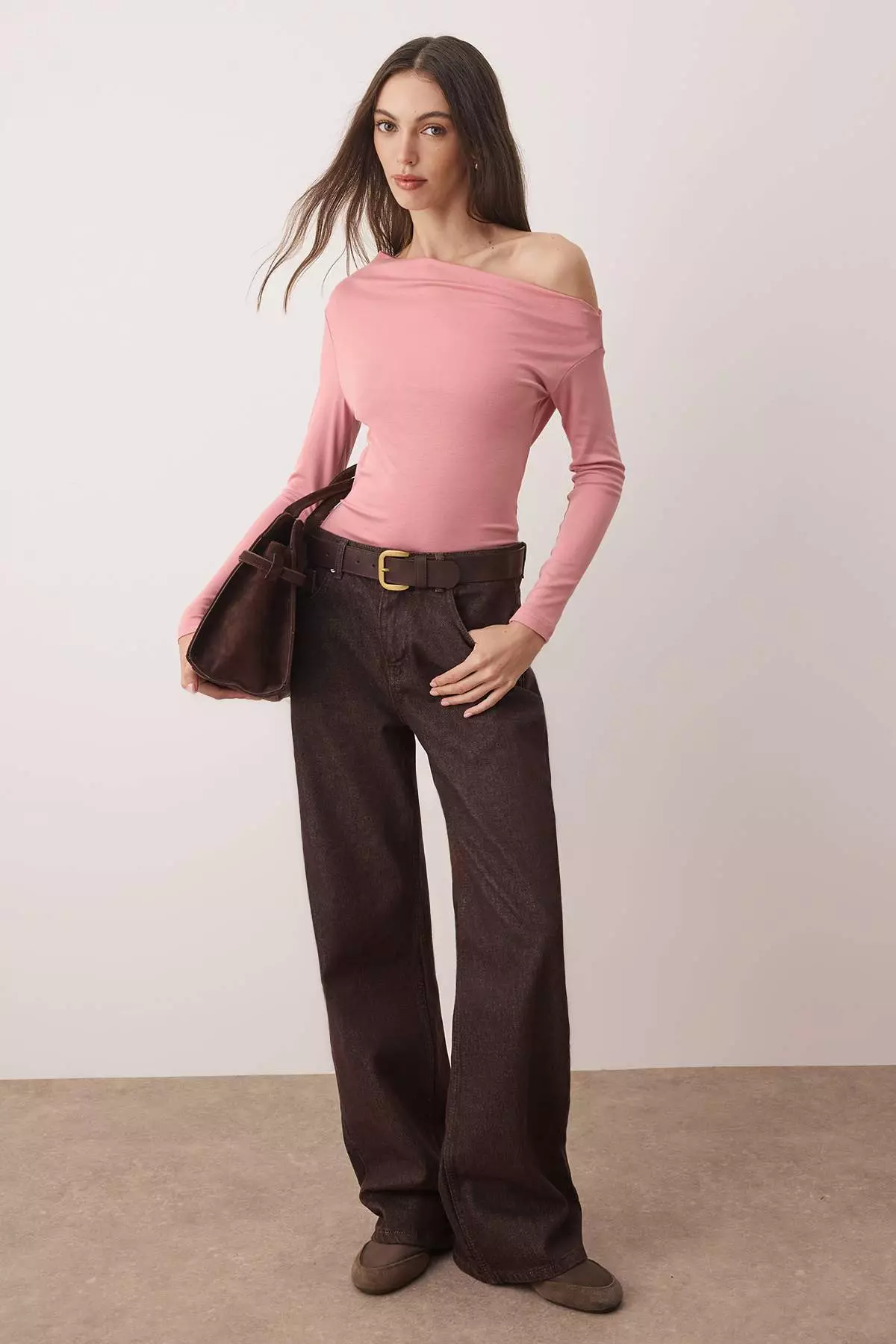TrendyolDusty Rose Plain Premium Soft Fabric Fitted/Fits The Body Boat Neck Knitted Blouse Twoaw24Bz00227869.00797.00