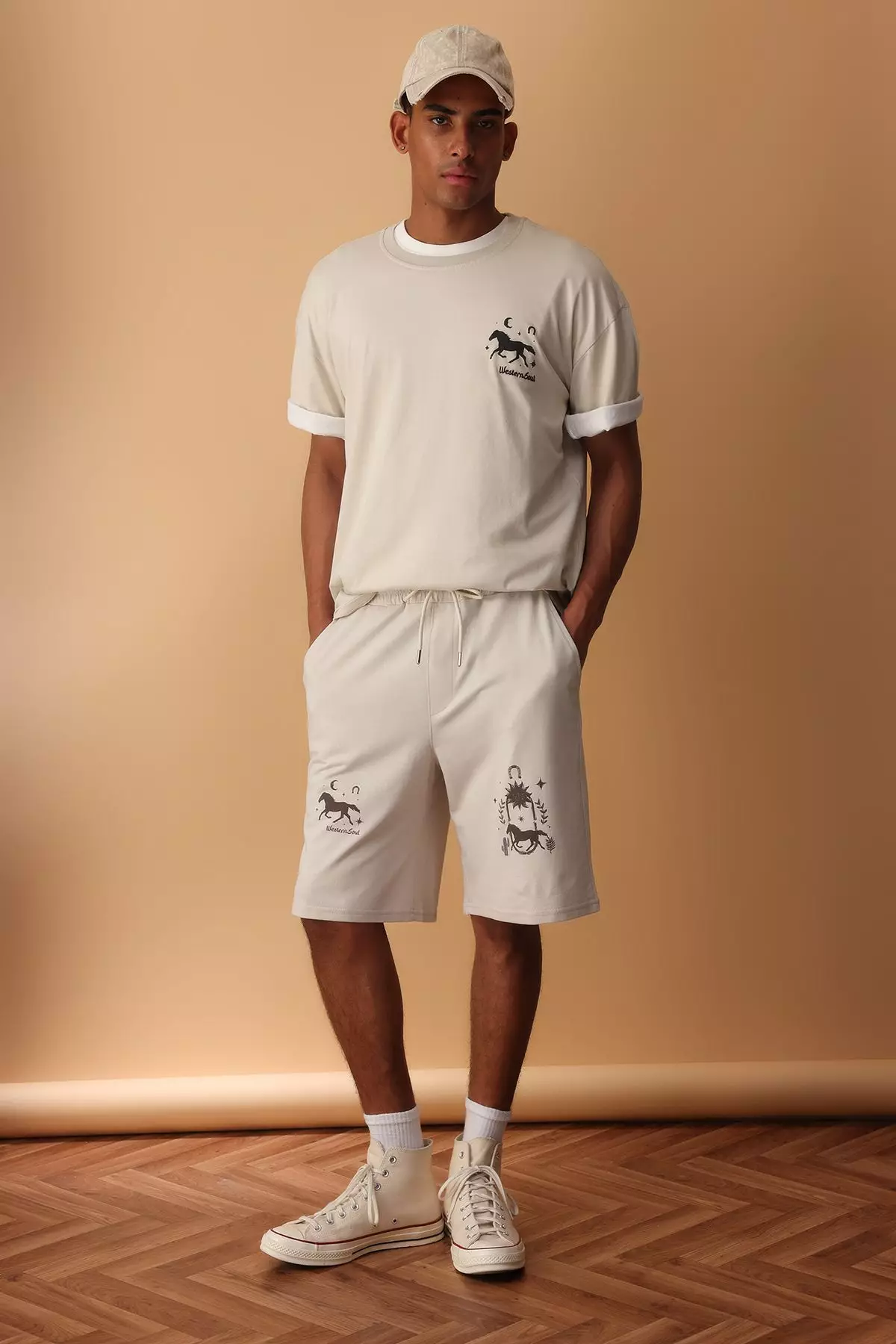 Ecru Oversize/Wide Cut Printed Shorts & Bermuda TMNSS25SR00051