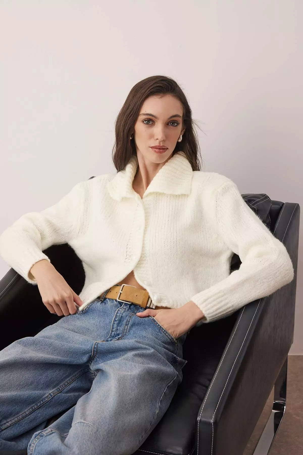 Ecru Oversize/Wide Pattern Crop Knitwear Cardigan Twoaw26Hi00179