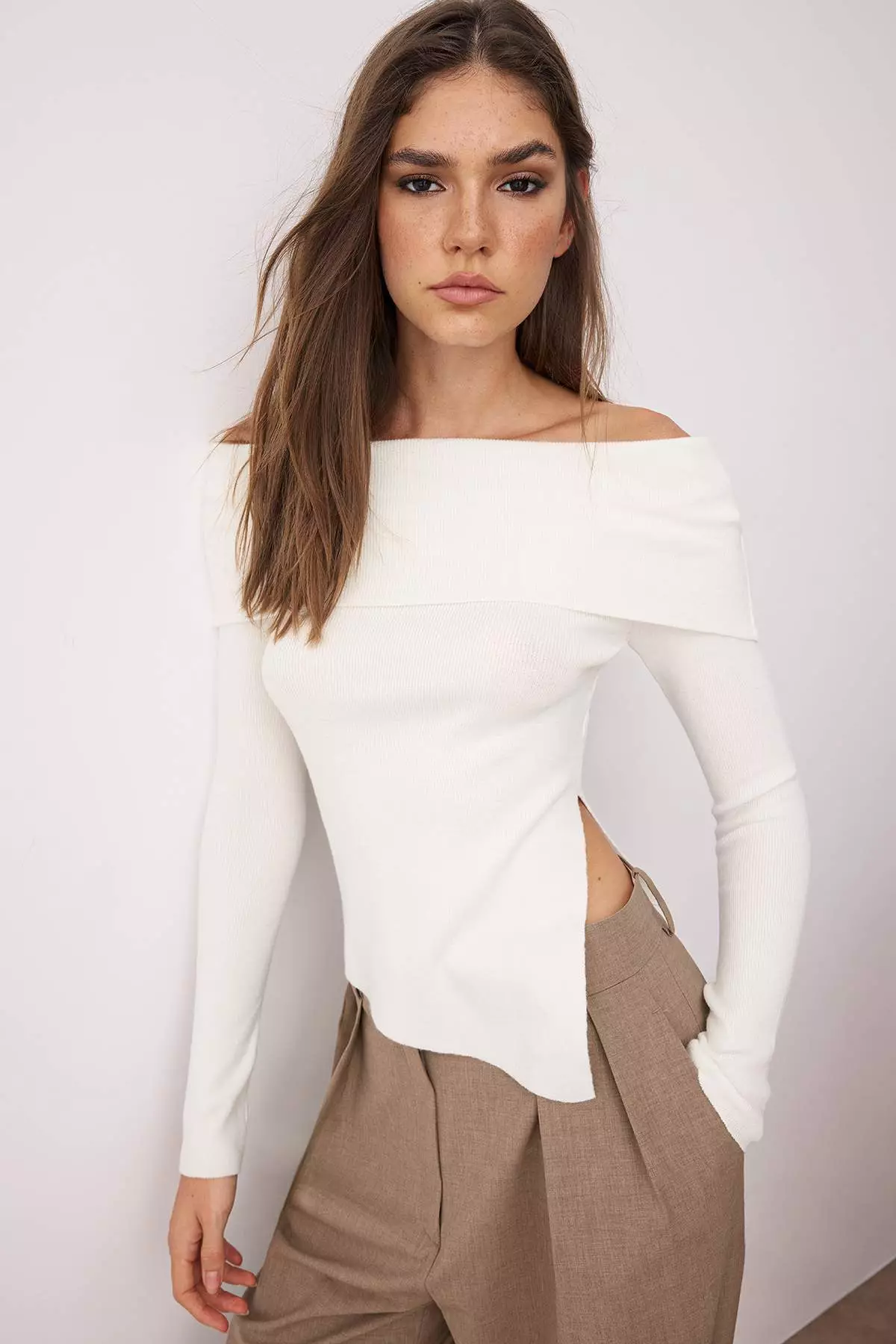 TrendyolEcru Premium Yarn/Special Yarn Carmen Collar Knitwear Sweater2799.002356.00