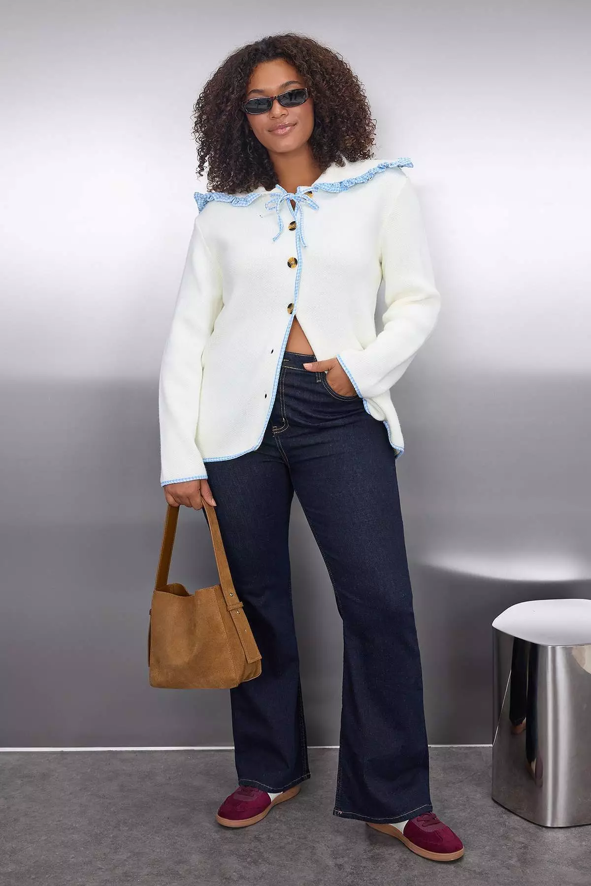 Ecru Soft Texture Turn-Down Collar Knitwear Cardigan