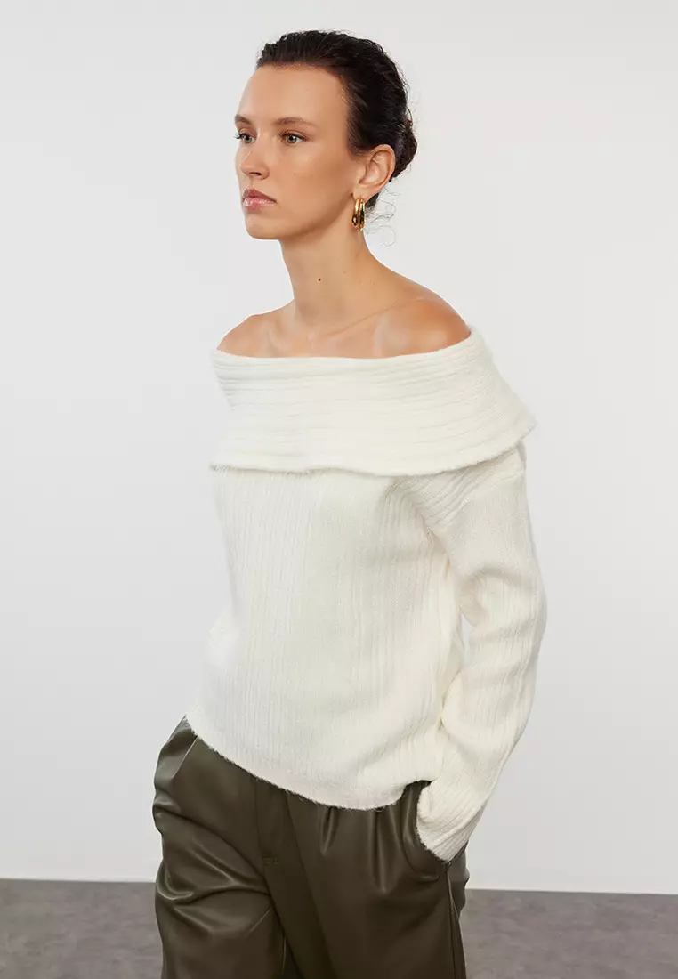 TrendyolEcru Soft Textured Carmen Collar Knitwear Sweater TWOAW25KZ000762289.001452.00