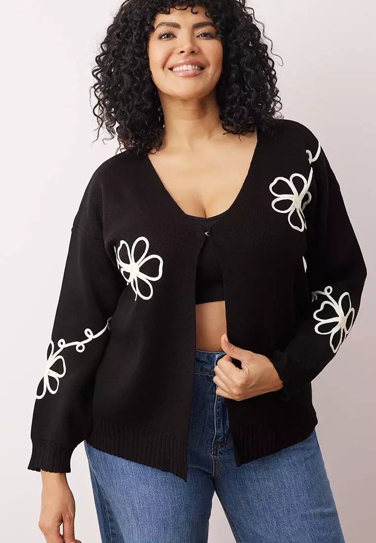 Embroidery Detailed V-Neck Knitwear Cardigan
