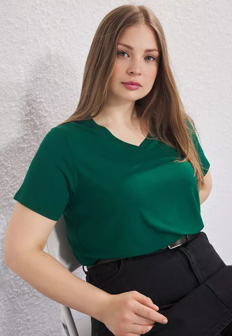 TrendyolEmerald Green Regular Fit V Neck Plus Size T-shirt TBBSS25BF000622579.001104.00