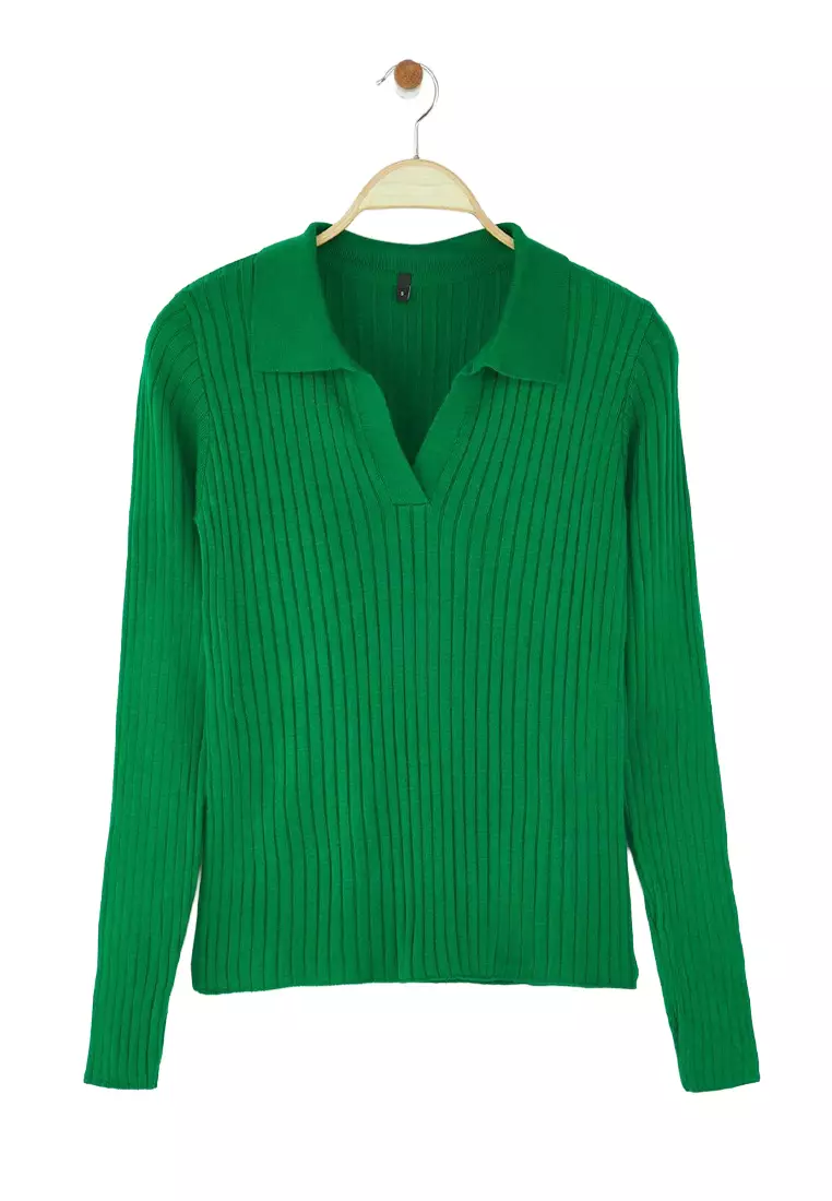 TrendyolEmerald Green Striped Sleeve Detail Polo Collar Knitwear Sweater Twoaw21Kz11131339.00954.00