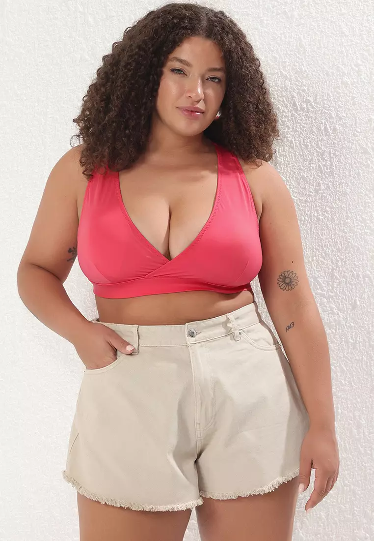 TrendyolFuchsia Double Breasted Neckline Plus Size Bikini Top Tbbss25Ct000111359.001247.90