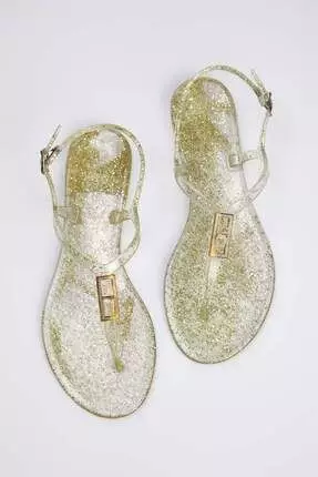 Gold Jelly Flip Flops Women's Sandals Takss25Sd00065