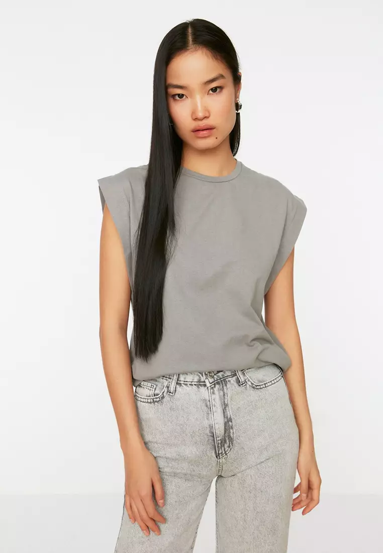 TrendyolGray 100% Cotton Wadding Look Basic Crew Neck Knitted T-Shirt TWOSS20TS0021799.00