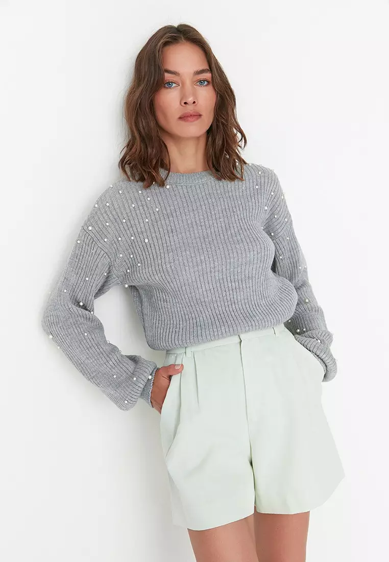 TrendyolGray Pearl Detailed Crew Neck Knitwear Sweater TWOAW22KZ14931999.001265.00