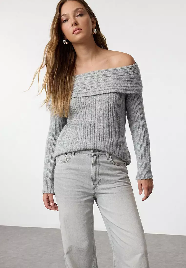 TrendyolGray Soft Texture Carmen Collar Knitwear Sweater TWOAW25KZ000762369.001739.90