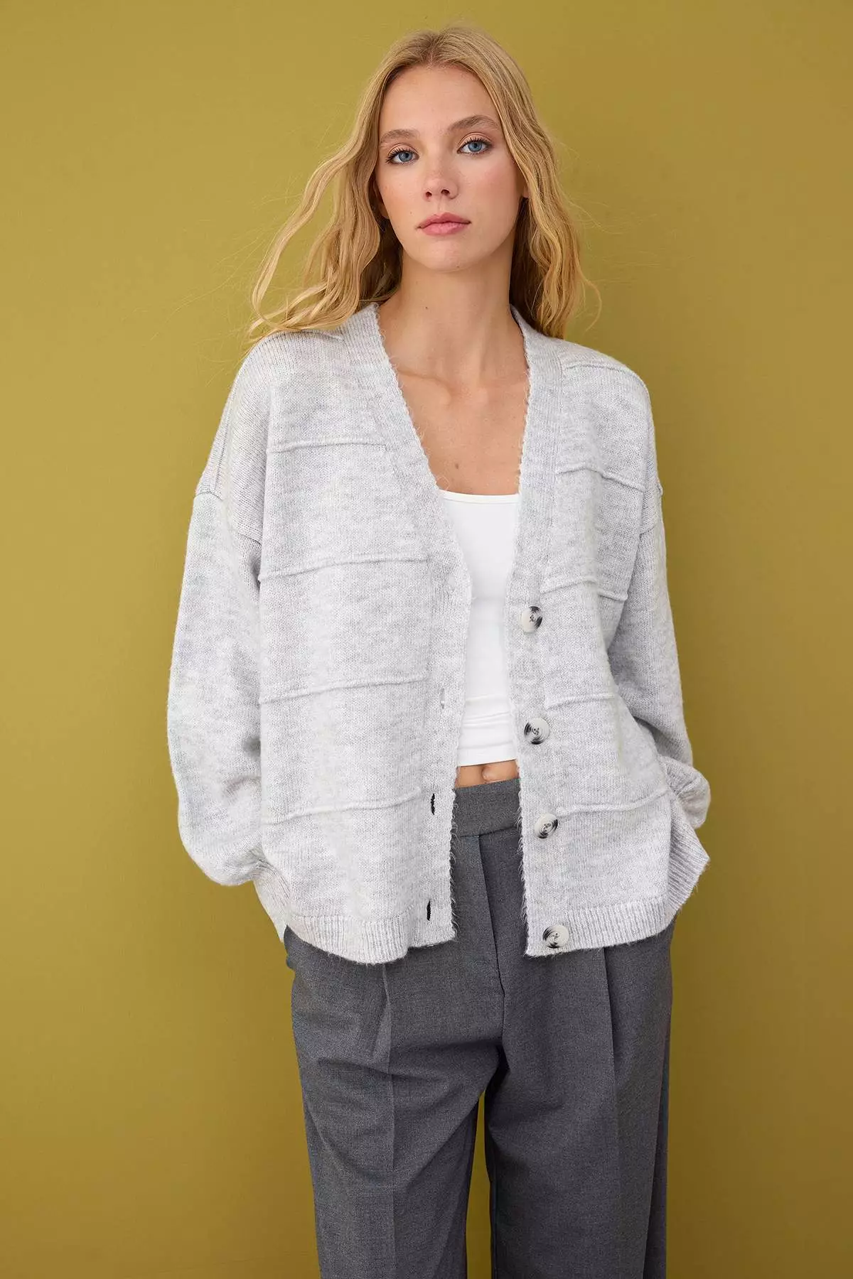 TrendyolGray Soft Textured Wide Pattern Knitwear Cardigan1899.001412.00