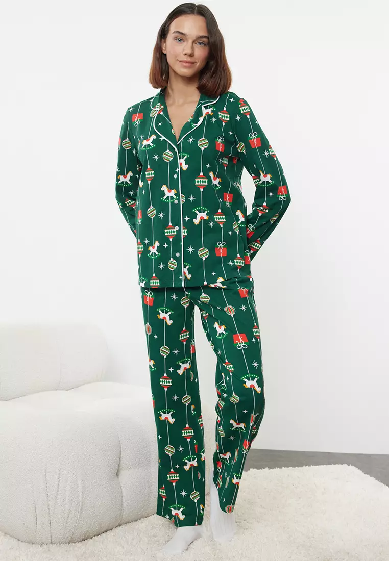TrendyolGreen 100% Cotton Christmas Themed Knitted Pajama Set THMAW25PT001721859.001256.00
