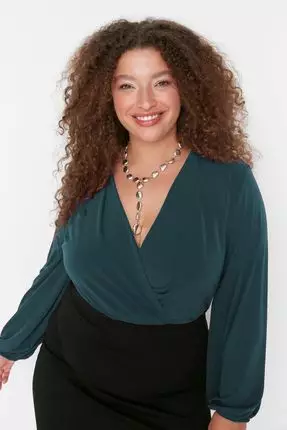 Green Balloon Sleeve Double Breasted Neckline Knitted Crop Blouse Tbbaw23Af00029