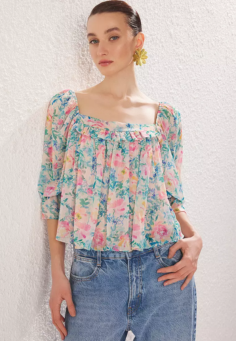 TrendyolGreen Chiffon Square Collar Balloon Sleeve Woven Blouse2489.00
