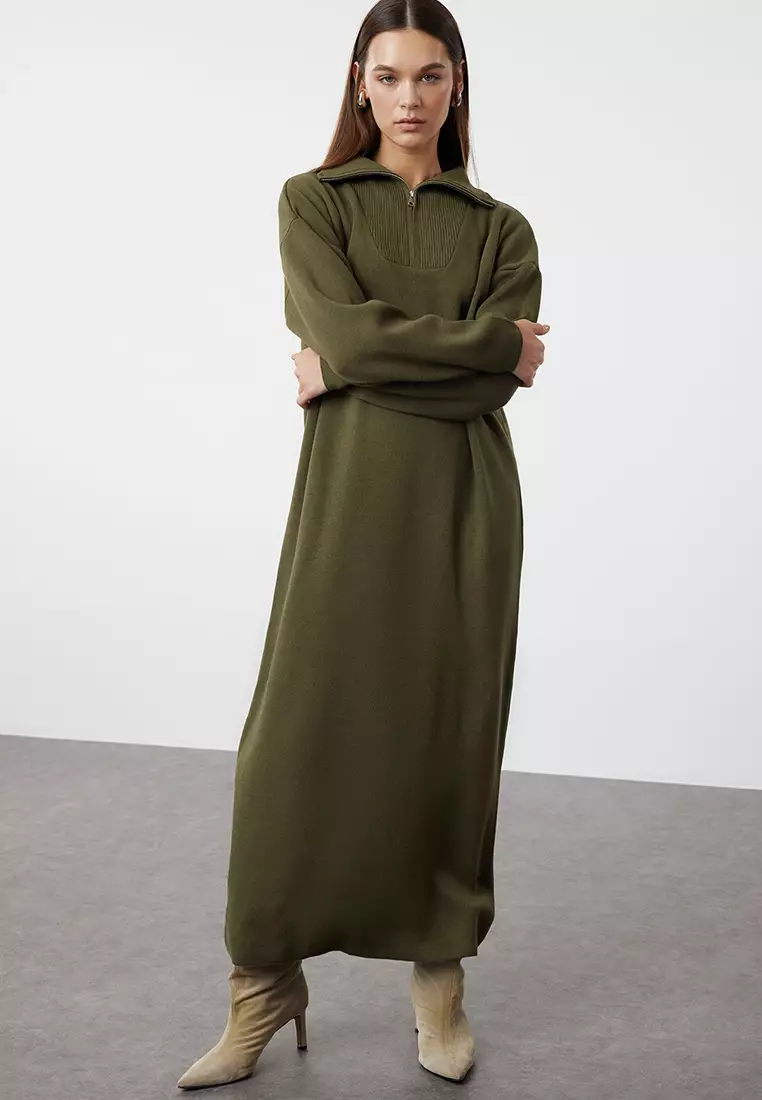 TrendyolGreen Comfortable Fit Zippered Collar Bsic Knitwear Dress TCTAW25EB000133079.001884.90