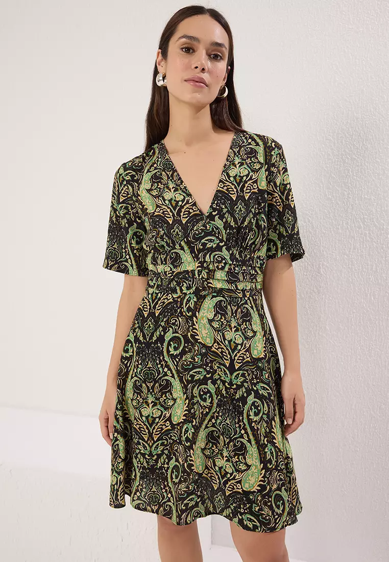 Green Floral Mini Woven Dress with Open Waist Skirt TWOSS25EL00251