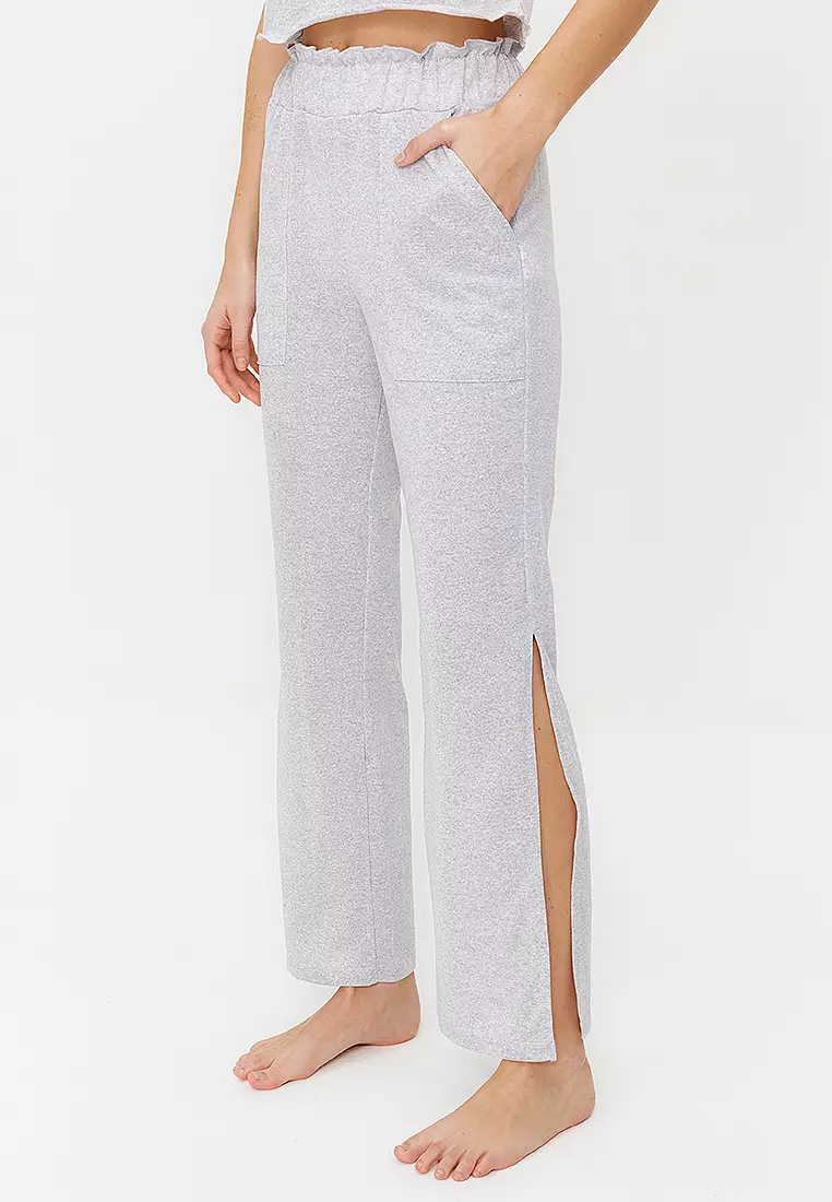 TrendyolGrey Melange Lace Ruffle And Slit Detail Knitted Pajama Set With Rope Straps1789.001386.90