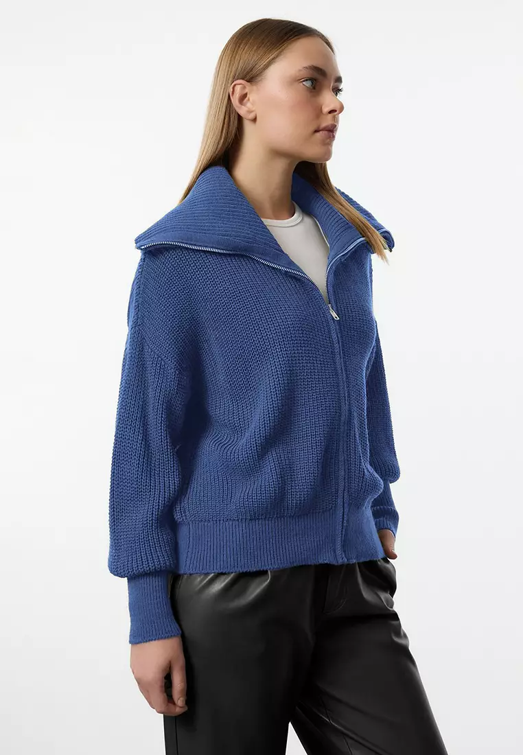Indigo Wide Fit Turn-Down Collar Zip-Up Knitwear Cardigan Twoaw24Hi00072