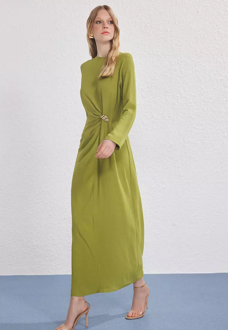 TrendyolKhaki Gold Brooch Detailed Aerobin Woven Dress TCTSS25EB001382929.002670.90