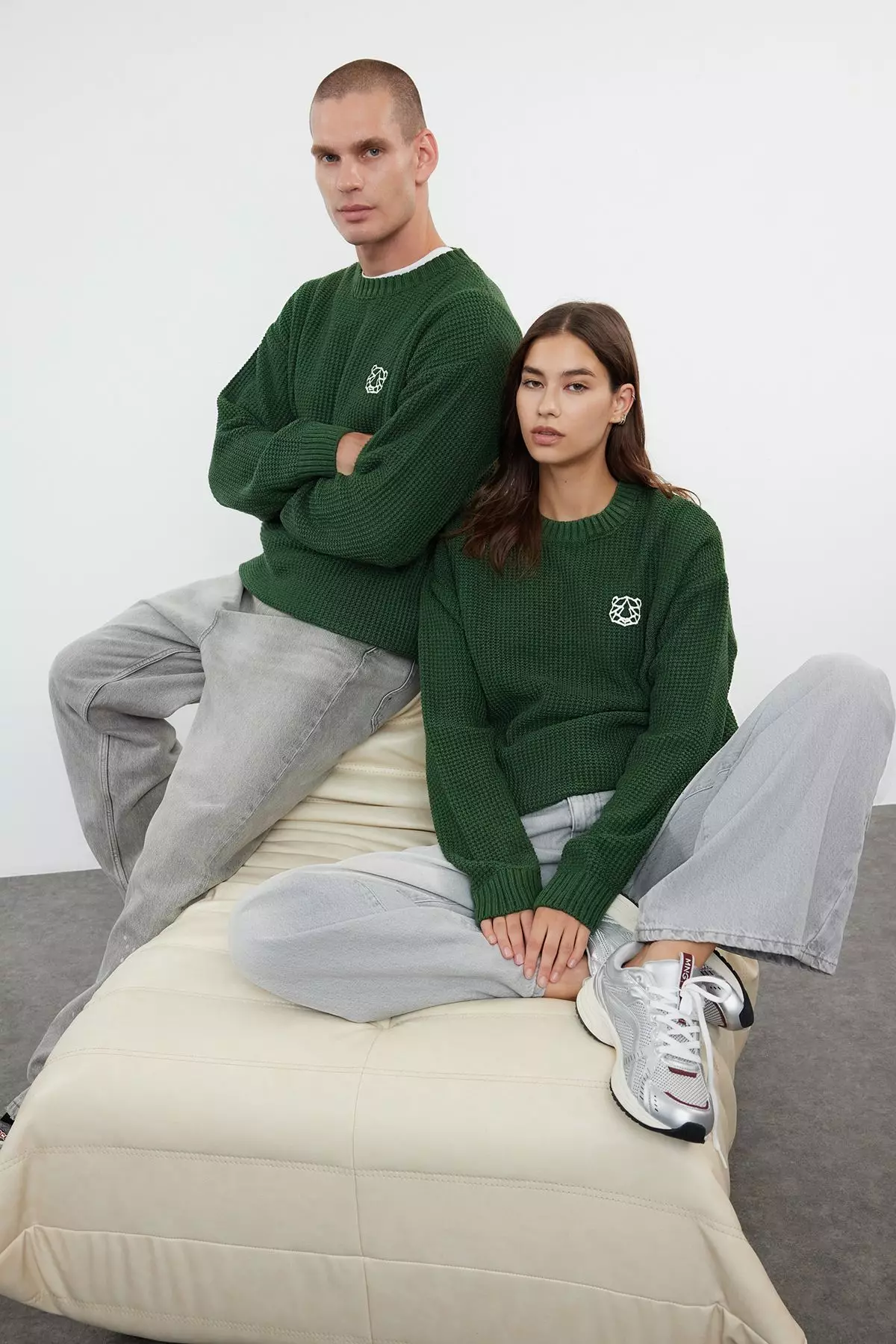 TrendyolKhaki Oversize Crew Neck Textured Sweater TMNAW24KZ000322239.001729.00