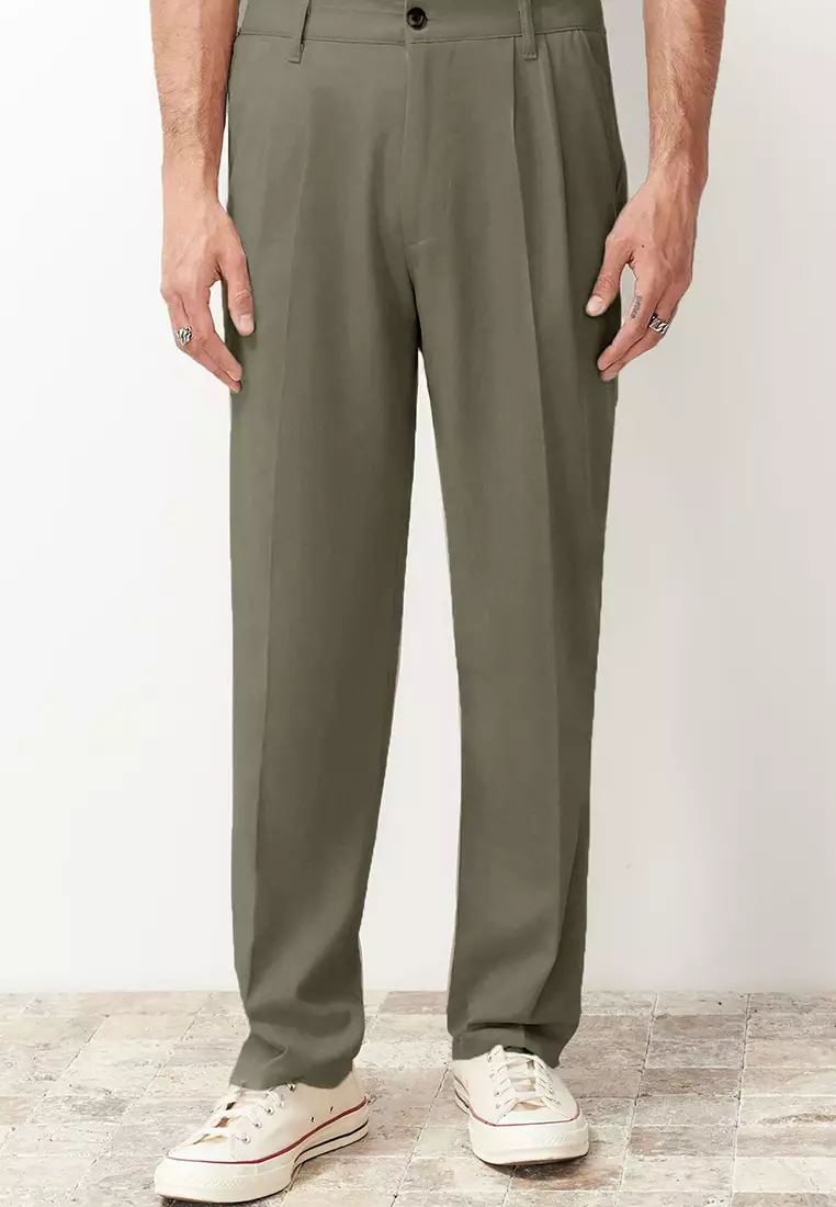 TrendyolKhaki Pleated Classic Baggy Fit Fabric Trousers TMNSS24PL000242549.001551.00